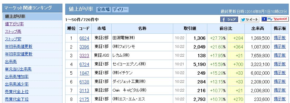 値上がり率操作説明: